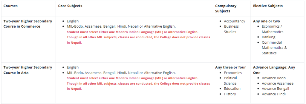 The admission for the degree course – Bachelor of Commerce, also has started. Those students who have cleared the HS or Class 12 from the CBSE or SEBA board can apply for admission to Commerce College.
