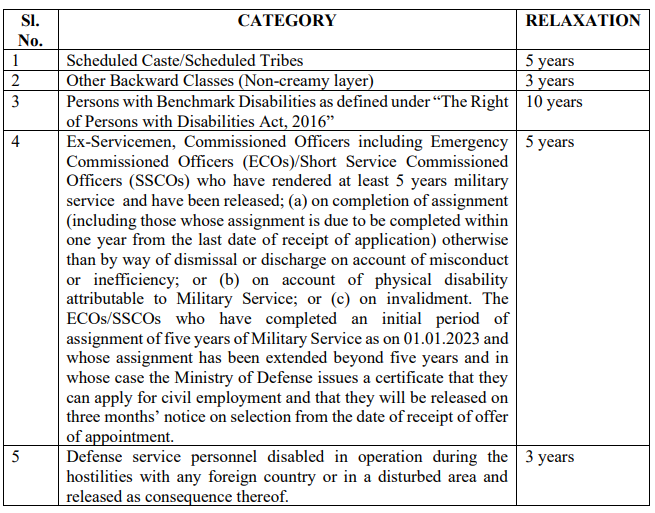 The minimum age of the candidate must be 21 years and maximum age must be 30 years i.e. a candidate must have been born not earlier than 2nd March 1993 and not later than 1st March 2002 (both dates inclusive).