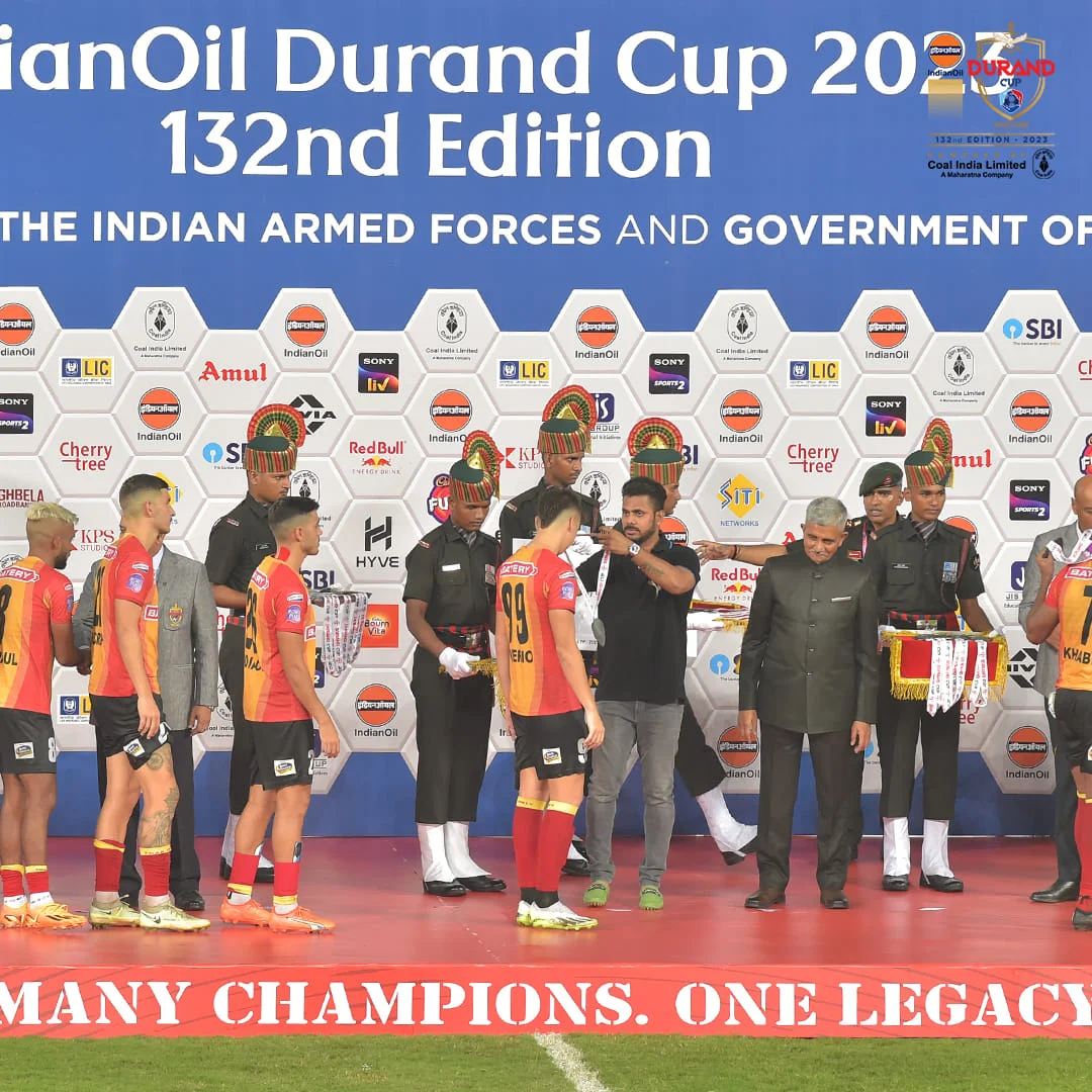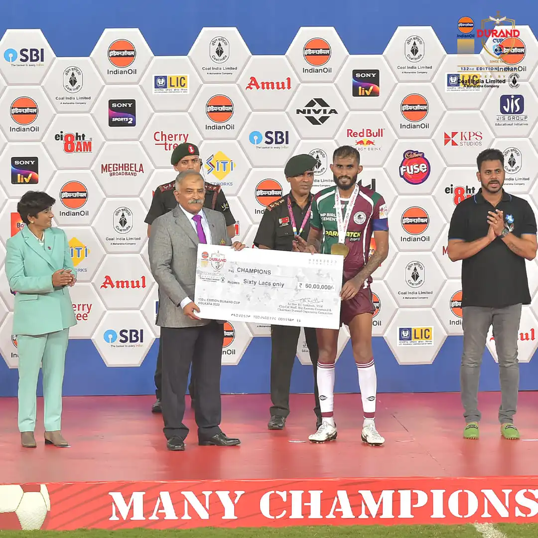 Additionally, Aroop Biswas, the Hon’ble Sports Minister of West Bengal, presented them with the Simla Trophy, followed by General Anil Chauhan, Chief of Defence Staff, who awarded Mohun Bagan Super Giant with the Durand Cup, and finally, Dr. CV Ananda Bose, Hon’ble Governor of West Bengal, handed them the Presidents Cup.
