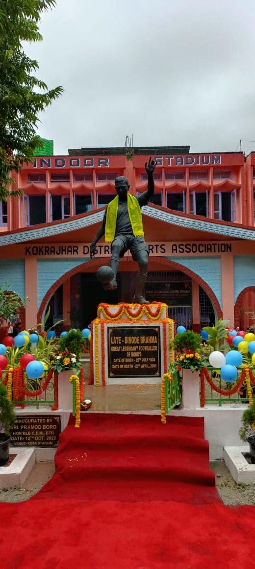 The Kokrajhar indoor stadium’s KDSA Ground is distinguished by the statue of the late Binod Brahma, a renowned Bodo footballer also known as Binod Dabla.
